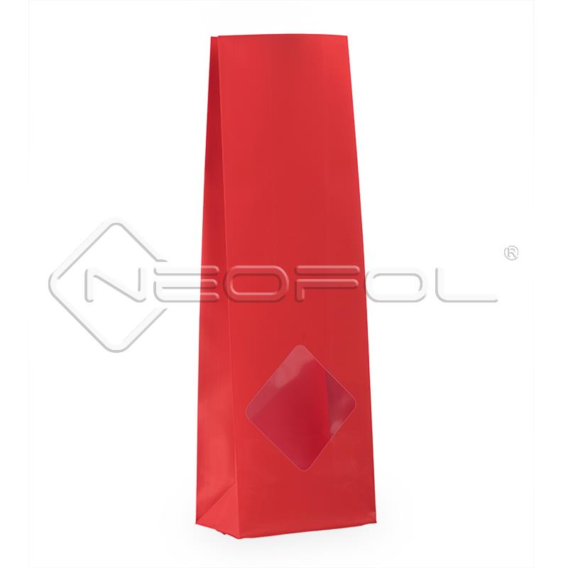 OPP-Blockbodenbeutel recyclebar mit Fenster / mattrot / 250 g