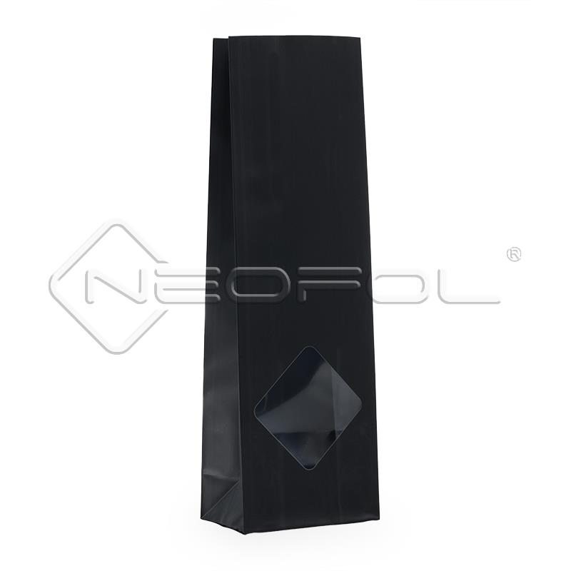 OPP-Blockbodenbeutel recyclebar mit Fenster / mattschwarz / 50 g