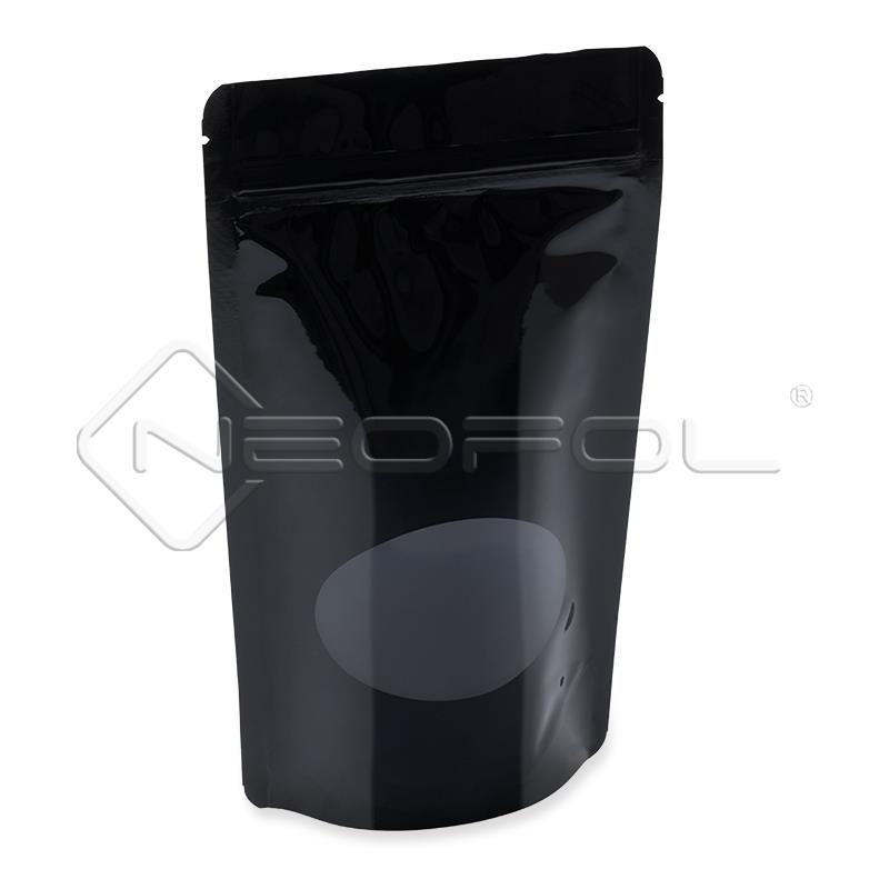 Standbodenbeutel mit Zipper und Fenster / schwarz / 500 ml