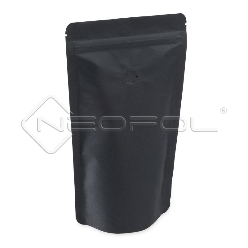 Standbodenbeutel mit Zipper und Ventil / kraftschwarz / 1000 g