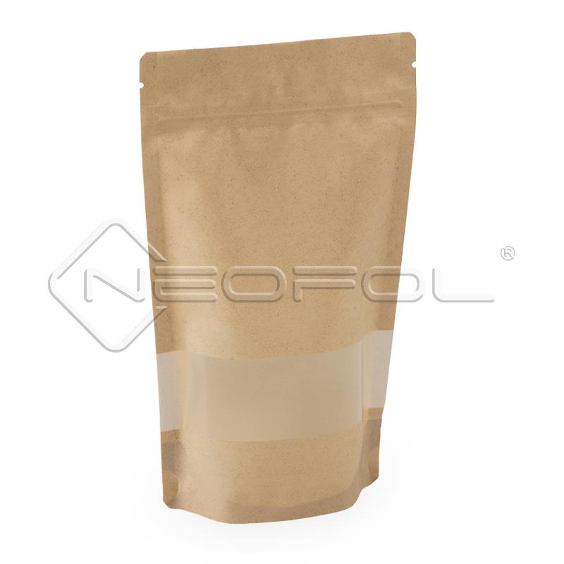 Standbodenbeutel recyclebar EVOH mit Zipper und Fenster / Paperlook / 250 ml