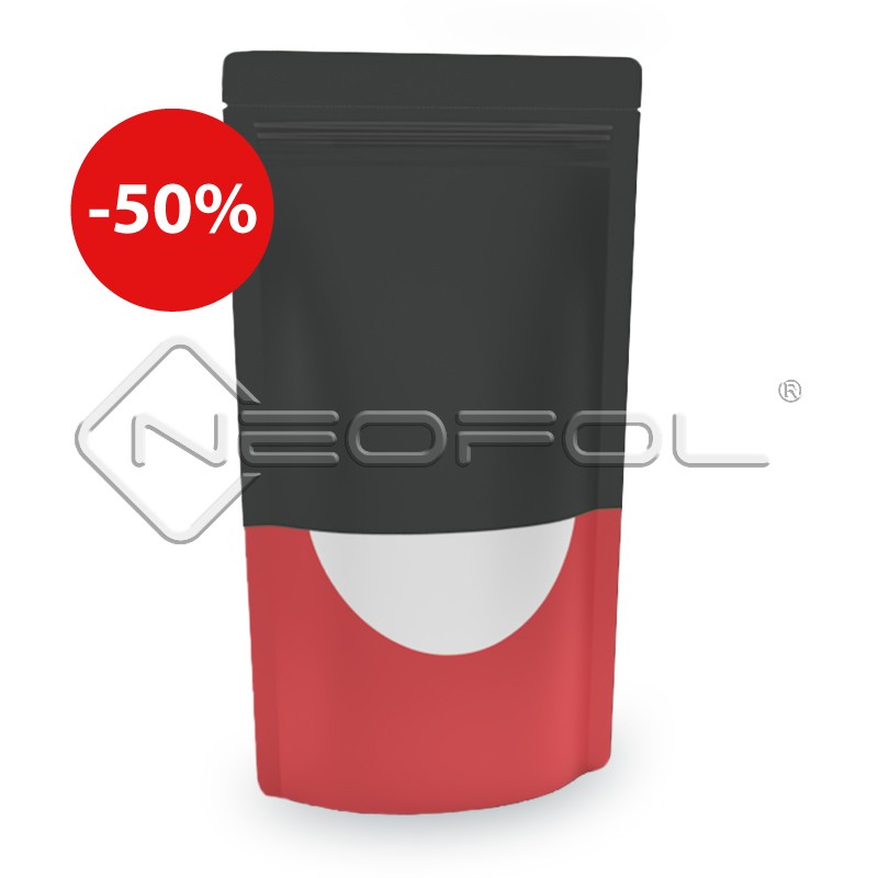 Standbodenbeutel recyclebar mit Zipper und Fenster / anthrazit-rot / 500 ml