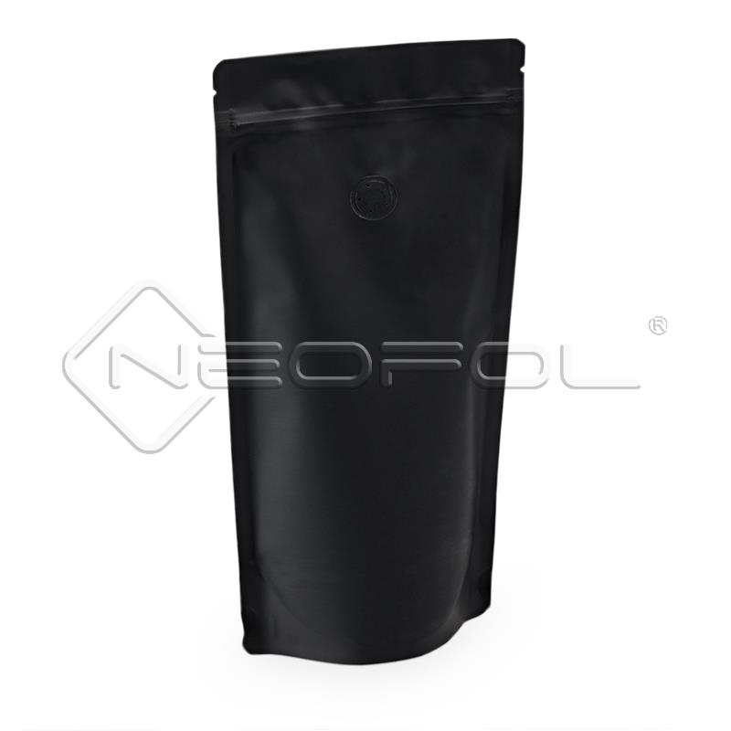 Standbodenbeutel recyclebar mit Zipper und Ventil / mattschwarz / 500 g